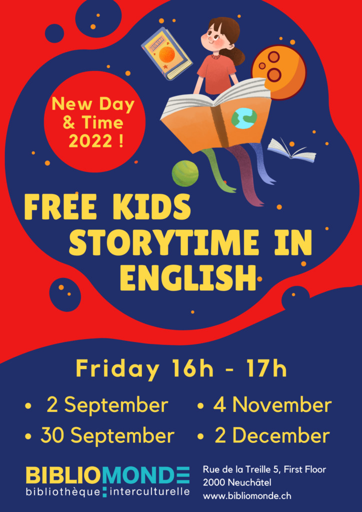 vendredi 15 septembre , 16h – 17h : Heure du conte pour enfants en anglais (Bibliomonde)