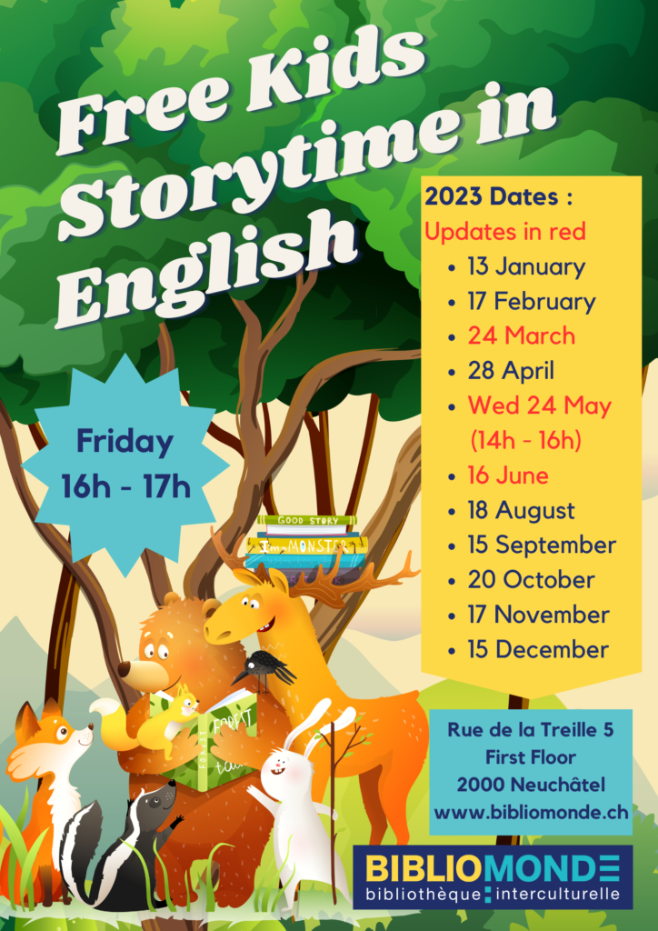 vendredi 13 janvier , 16h – 17h : Heure du conte pour enfants en anglais (Bibliomonde)