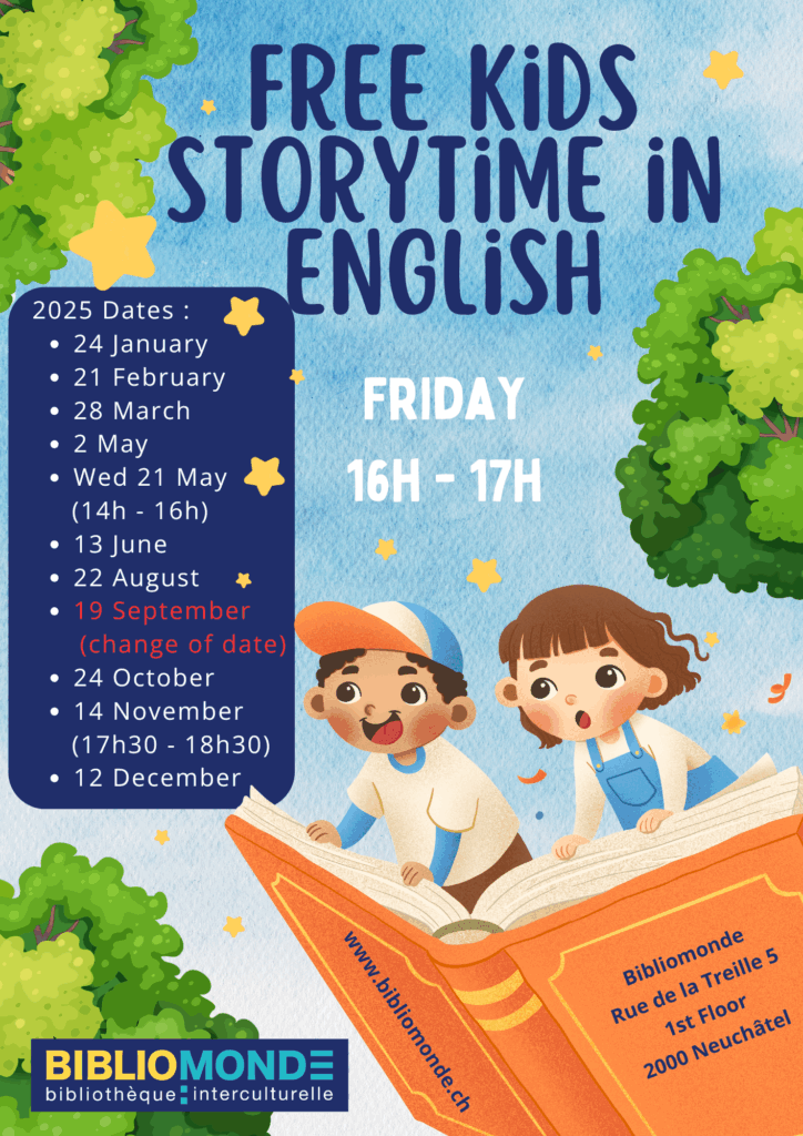 vendredi 20 septembre , 16h – 17h : Heure du conte pour enfants en anglais (Bibliomonde)